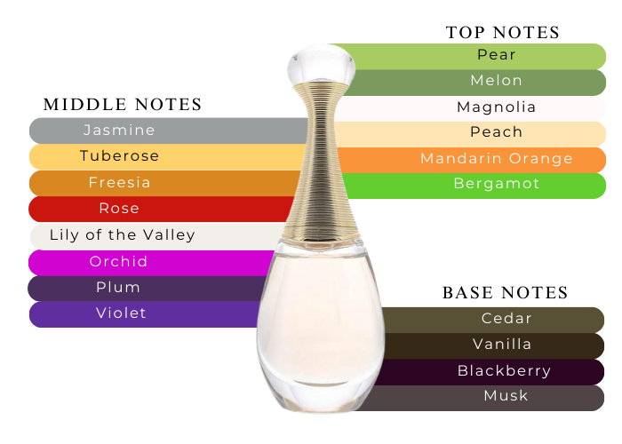 • Top notes are Mandarin Orange, Melon, Pear, Bergamot, Peach and Magnolia.