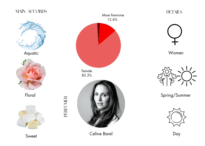 - Middle notes: Peony, Water Lily, Rose, Jasmine and Raspberry