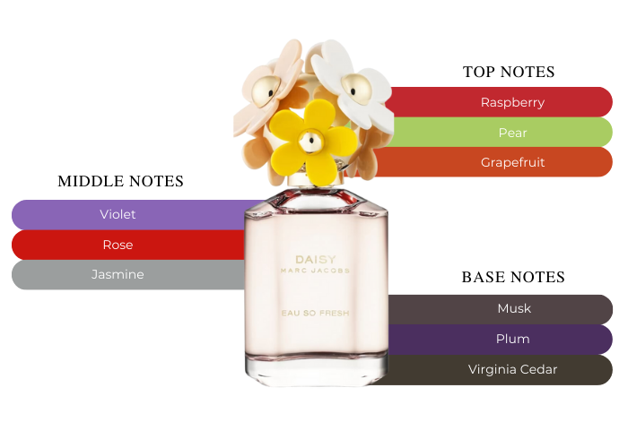 If you're searching for a light, yet elegant perfume that is perfect for warm weather, then look no further than Daisy Eau So Fresh by Marc Jacobs. This fragrance features notes of pear, grapefruit, raspberry, apple blossom, violet, wild rose, and musk so it can be used anytime during the spring season or early summer days.