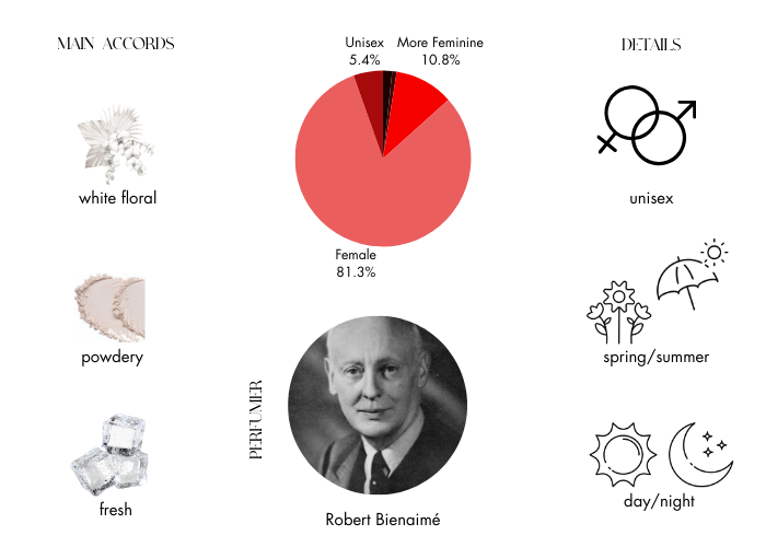 A genuine multi-floral bouquet modernized for today's discerning woman by adding a twist of innovative and vibrant originality. The House of Houbigant has always believed the use of the extract is the best way to wear a fragrance. Notes: - Head notes: bergamot, galbanum, tarragon, lemon. - Heart notes: jasmine, tuberose, lily of the valley, violet, rose, ylang-ylang, carnation, broom flower, orange blossom, clove. - Base notes: oakmoss, sandalwood, civet, cedarwood, musk, orris, tonka bean. 1 oz. Made in France.