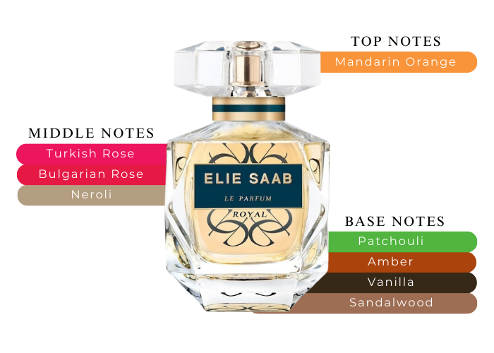 Le Parfum Royal Elie Saab Perfume by Elie Saab, Designed by Maïa Lernout, Le Parfum Royal Elie Saab is a women’s chypre floral fragrance launched in 2019. A single top note of mandarin offers a lusciously sweet introduction. Next, the heart combines the luxurious scents of Turkish rose absolute and Bulgarian rose along with Lebanese neroli, a fragrant floral with a sweet and lightly bitter orange aroma. Indonesian patchouli, Indian sandalwood, amber and vanilla round out the blend with their soft, milky, cozy and earthy tones.