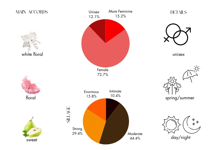This floral and fruity scent is a blend of Grassy Lemon, Lily of the Valley, Heliotrope, Melon, Galbanum, and Juicy Peach.