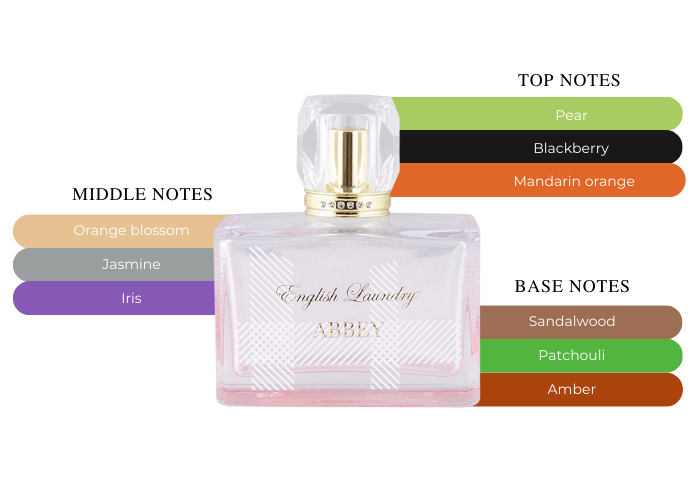 Inspired by English style & grace, this English Laundry Abbey Eau De Parfum exudes femininity. Top notes of rose petals, white jasmine, & sweet honeysuckle. We then arrive at lily of the valley, sun drenched sandalwood, and ending our magical journey with amber, & santal.