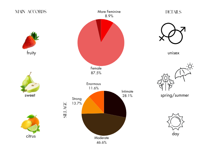 op notes include orange, passion flower and mango highlighting that this is an exotic edition refreshed with aquatic, juicy and fruity peach notes combined with magnolia in a heart. Base notes add woody notes and sensual musk.