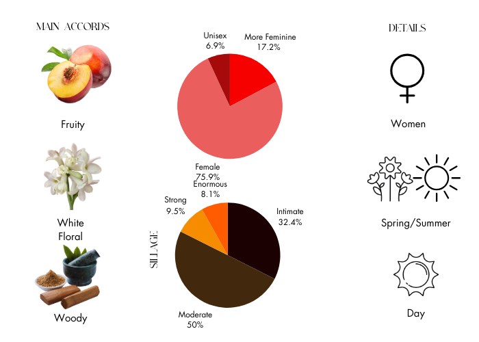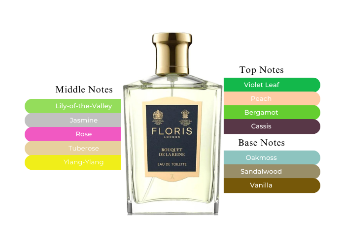 Embrace curiosity, experience a warm rush of violet leaf, juicy blackcurrant buds and sensuous tuberose. The enticing soft fruitiness of fresh peaches combines with jasmine and rose entwined with exotic tuberose and ylang ylang as the radiant floral heart unfolds and brought back to earth with a base of rich green oakmoss, sandalwood and vanilla. Bouquet de La Reine has an instant chemistry. Created for a queen of the royal court, a radiant reflection of timeless beauty.