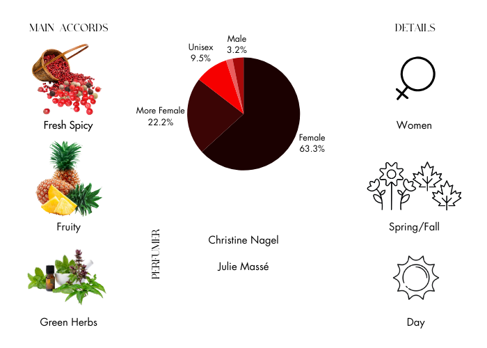Fragrance notes are Sparkling Pear, Rose and Woody Vanilla.