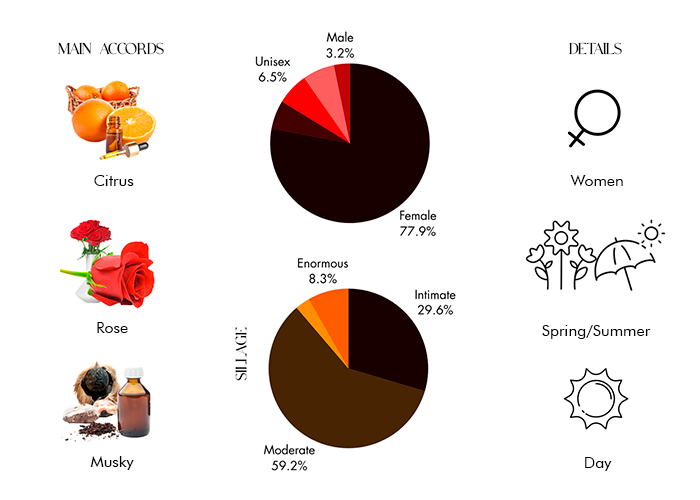 As the fragrance settles, the heart notes of delicate rose essentials emerge, adding a touch of romance to the composition. The blossoming roses create an aura of captivating femininity, evoking a sense of confidence and allure that is truly irresistible.