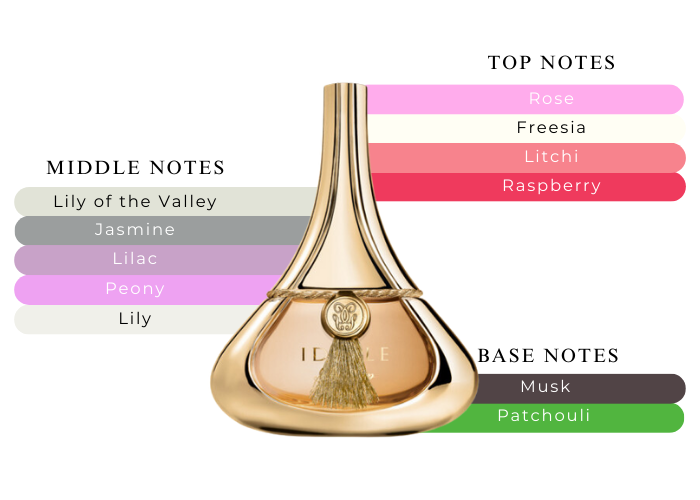 Fragrance notes are peony, lily of the valley, rose, freesia, jasmine,& lilac.