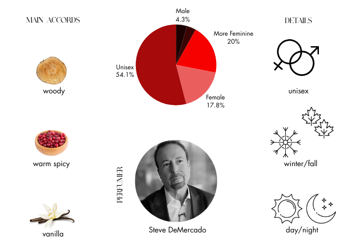 This floral and spicy fragrance is a blend of Bergamot, Egyptian Papyrus, Indonesian Patchouli, Bulgarian Red Rose, and Night Blossoming Jasmine.