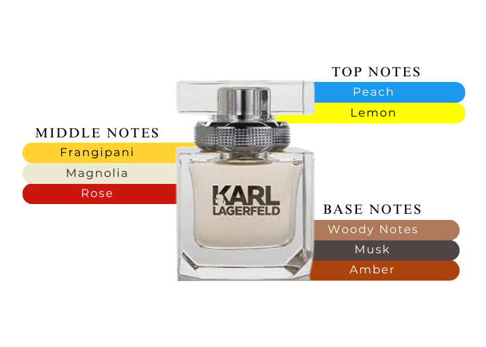 Karl Lagerfeld Perfume by Karl Lagerfeld, Karl Lagerfeld for Her is a bright, feminine fragrance that layers light citrus and floral tones over a sensual base of precious woods and musk. The opening is an effusive blend of fresh, sweet-tart and sparkling lemon softened by velvety, nectarous tones of ripe peach. Rich florals emerge as the scent develops, mingling lush magnolia and powdery-fresh red rose with creamy, tropical nuances of plumeria. Base notes of amber and white musk fuse to produce a subtly seductive finish. Sophisticated and elegant with a modern edge, For Her puts a contemporary twist on classic feminine florals.