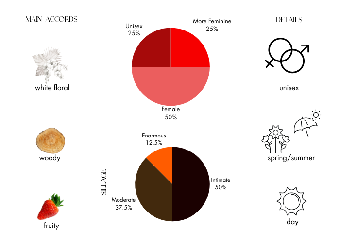 - Middle Notes: Gardenia, Jasmine, Lily Of The Valley, Narcissus and Rose