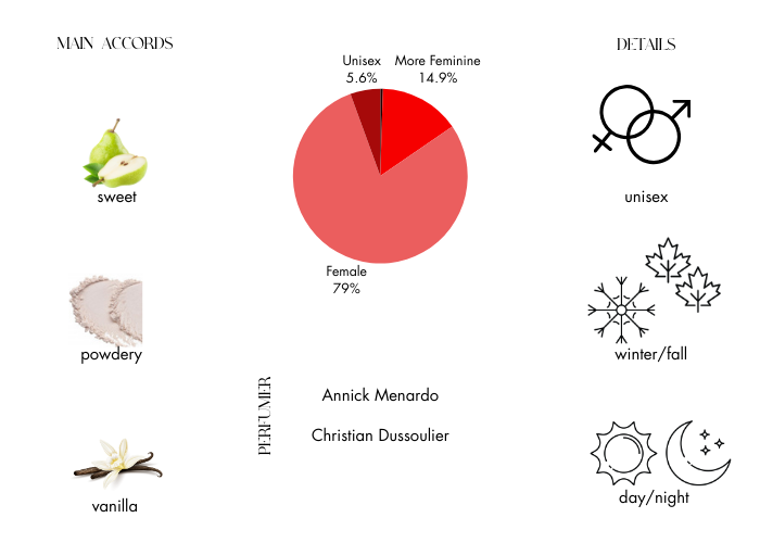 - Base Notes: Vanilla, Praline, Tonka Bean, White Musk and Vetiver