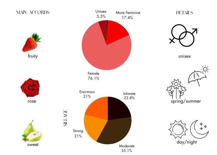Fragrance notes are juicy Raspberry, Apricot Nature Print, Jasmine Sambac, and Cashmere Woods.