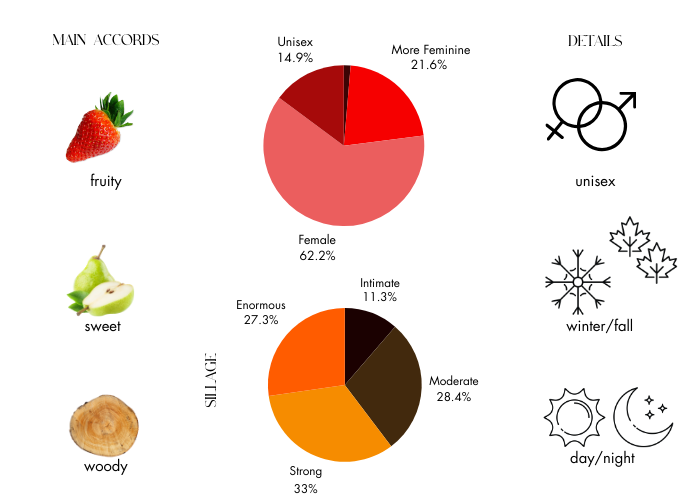 Launched by the design house of Michael ors. This feminine fragrance has a blend of plum, red fruits, laotian oud, praline, amber, woodsy, and musk notes. It is recommended for casual wear.