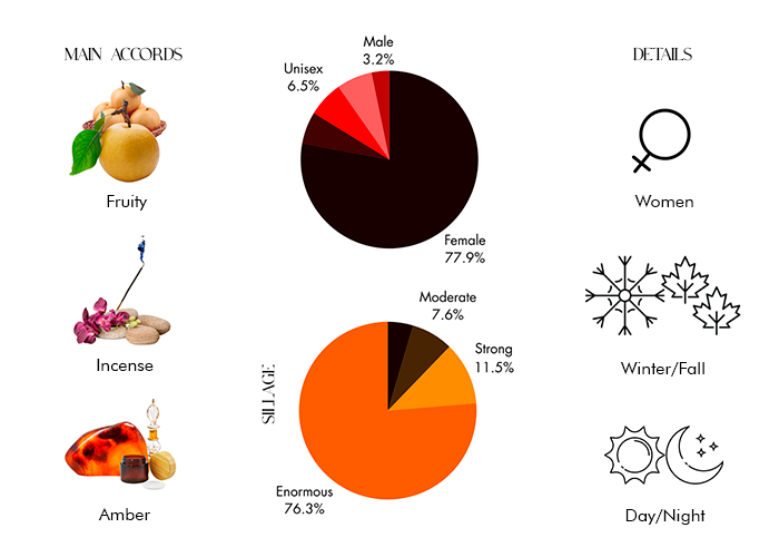 • Base Notes: Ambergris, Musk, Tonka Bean, Vanilla and Woody Notes