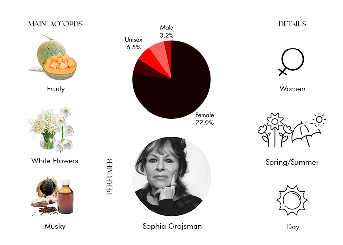 This floral and aquatic fragrance is a blend of Melon, Mandarin, Osmanthus, and Blue Rose.