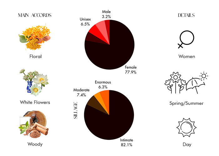 - Top Notes: Lily, Osmanthus, Rose and Tangerine