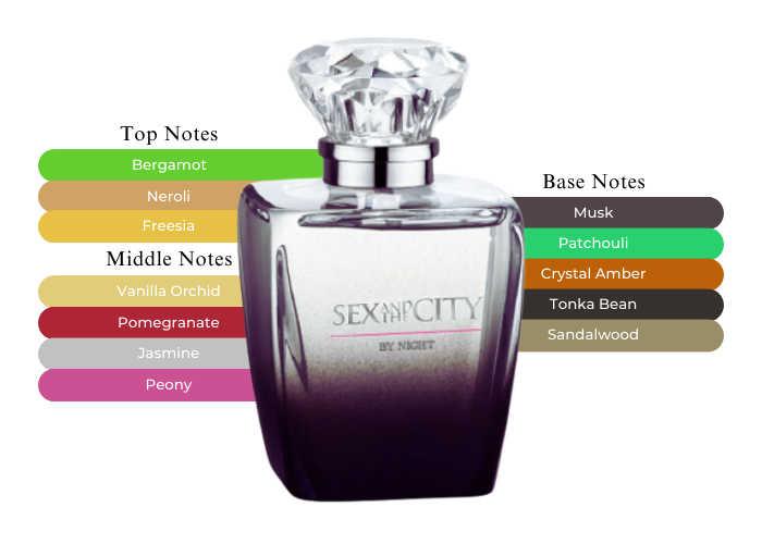 This floral fragrance for contemporary women is crisp, powdery, feminine and tempting. With top notes of bergamot, pear blossom, neroli and freesia, heart notes of jasmine, peony and vanilla orchid, and base notes of sandalwood, amber, tonka bean, musk, and patchouli, By Night is recommended for evening wear.