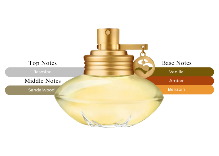 S By Shakira by Shakira for Women , this sweet and powdery fragrance is a blend of Amber, Benzoin, Vanilla, and Sambac Jasmine.