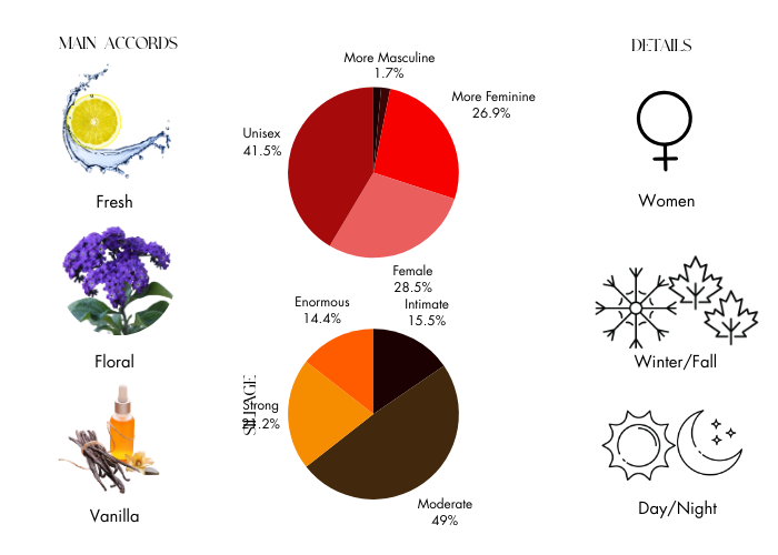 - Top Notes: Aldehydes, Pink Pepper and Bergamot.