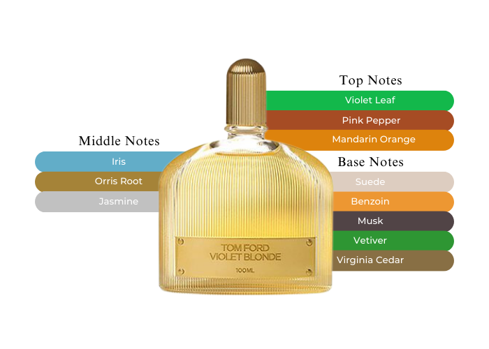 Violet Blonde by Tom Ford for women is a blend of Suede, Cedar, Violet Leaf, Pink Pepper, And Sambac Jasmine.