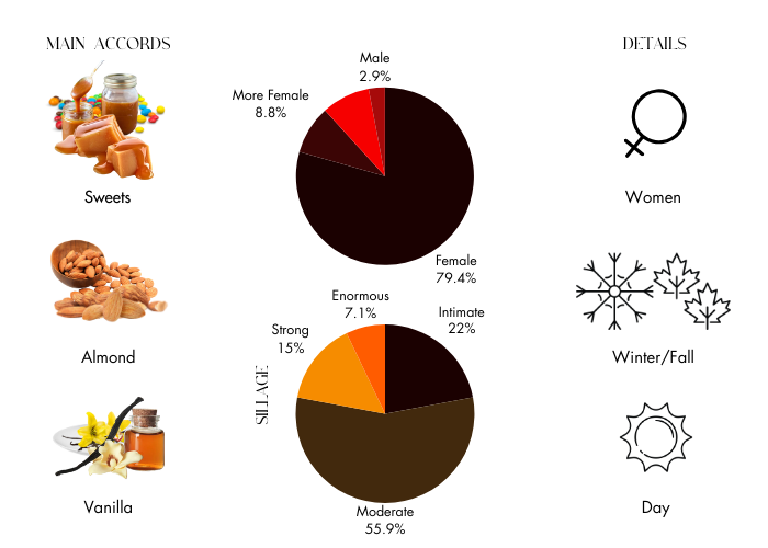 This sweet and fruity fragrance is a blend of Caramel, Almond, and Brown Sugar.