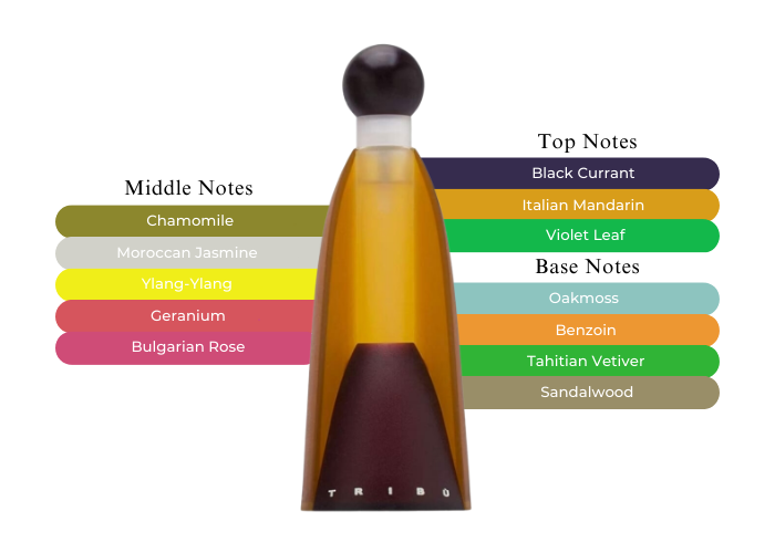 Tribu is a Benetton fragrance presented in 1993 in cooperation with Bernard Ellena. A Mediterranean breeze brings aromas of Italian violet leaf and Italian mandarin, along with Belgian black currant at the top. Bulgarian rose, geranium and jasmine from Morocco, Indonesian ylang-ylang and Egyptian chamomile settle at the heart. Base notes introduce Indian sandalwood, Haiti vetiver, oakmoss from Yugoslavia and Tai benzoin.