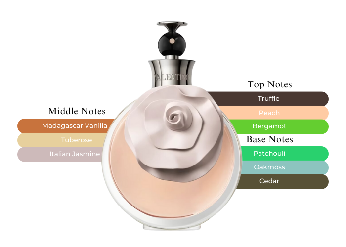 Fragrance notes are Italian bergamot, Smeggia peach, tuber, tuberose, and Italian jasmine.