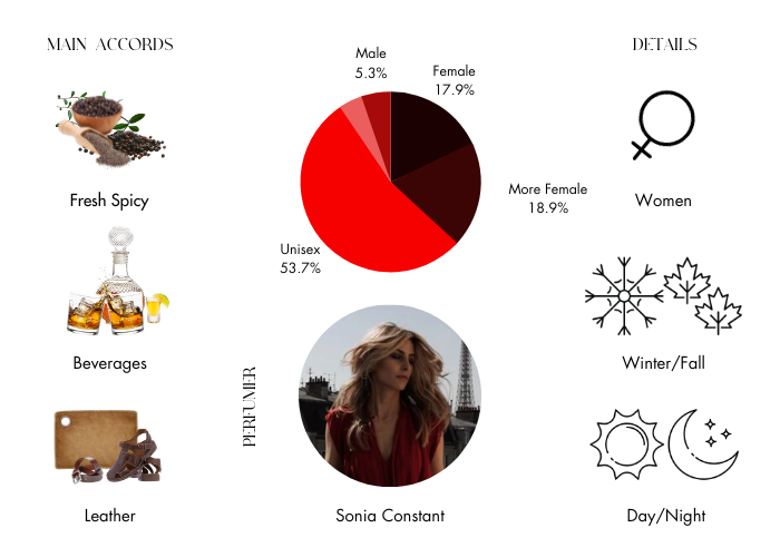 Fragrance notes are pepper, rose, plum and liquor, leather and sandalwood.