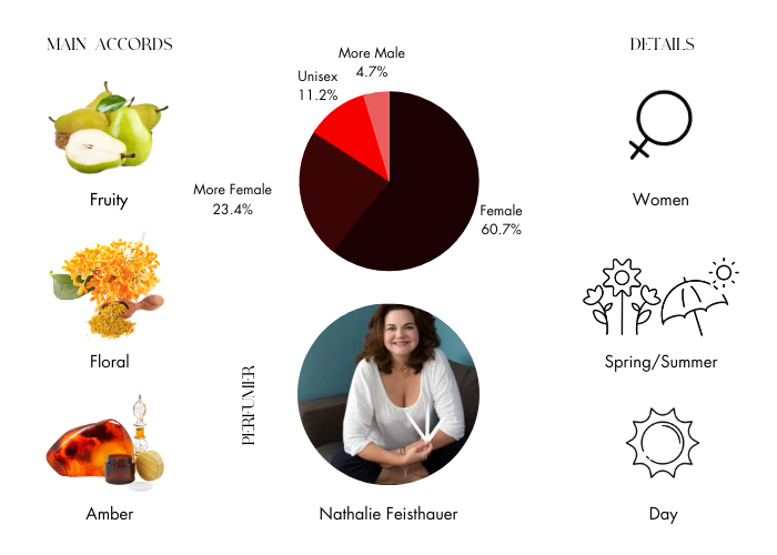 Reve Perfume by Van Cleef, Introduced in 2013, Reve is a floral fruity women’s perfume with floral, fresh, fruity, white floral, sweet, and rose main accords. Good for spring day wear, this scent has moderate longevity and sillage. This fragrance is a collaboration between Symrise perfumers David Apel, Evelyne Boulanger, Emilie Bevierre Coppermann, Nathalie Feisthauer, Fanny Grau, and Uwe Schaar. It has pear and neroli top notes and peony, lily, and osmanthus middle notes. The base notes are sandalwood and amber