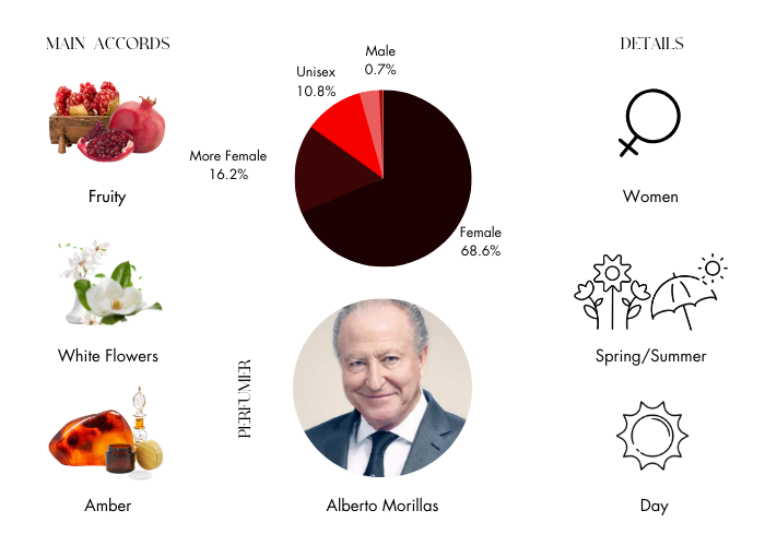 - Top Notes: Red Fruits, Yuzu, Pomegranate and Caramel