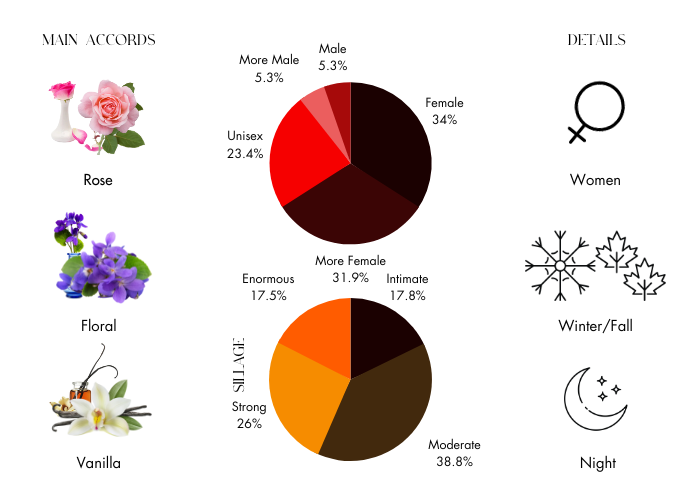 • Base Notes are sandalwood, vanilla, leather and oud.