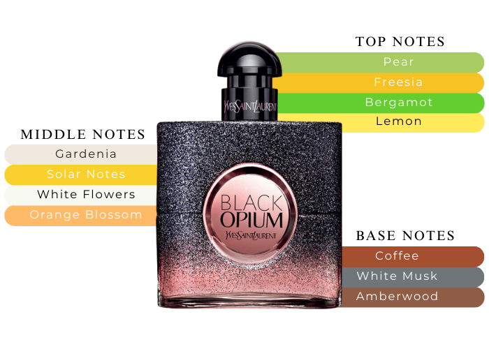 "The freshness of lemon, bergamot and pear in the top notes mixed with freesia is the first floral accord of the composition. The heart includes white flowers of golden gardenia, orange blossom and a solar floral accord. The base ends with iced coffee, white musk, mineral accord and woody amber."