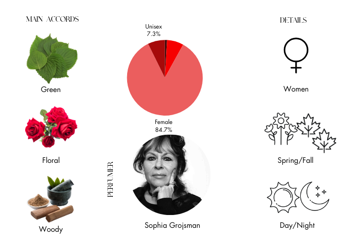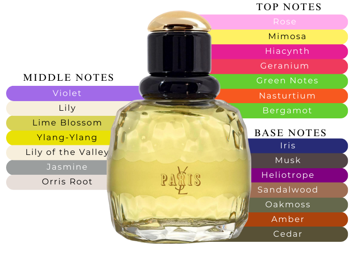 YSL Paris is a blend of mimosa, orange flower, rose, moss, sandalwood, and amber. This item was created by Sophia Grojsman in 1983 as a tribute to Parisienns who are romantic and charming. Paris by Yves Saint Laurent is a classic fragrance that feels nostalgic. This fragrance can be worn all year round.