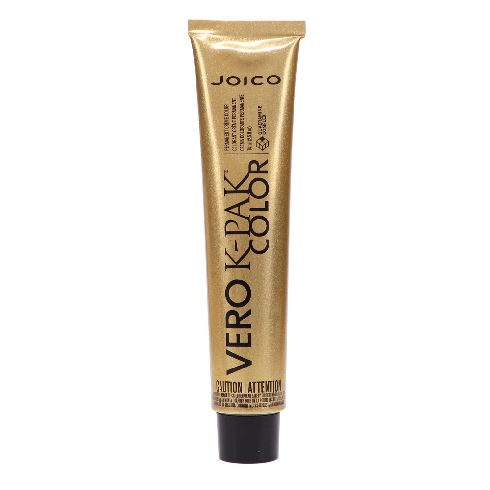 7B - Dark Beige Blonde What it is: If you want a vibrant hair color that lasts, you need Joico Vero K-Pak Hair Color. It’s a permanent crème hair dye that comes in an impressive range of shades. Choose a natural shade like light brown, or go for a fashion-forward shade like crimson red. What it does: When used with a quality developer, this permanent hair dye will give you a long-lasting, true-to-shade result. It penetrates the hair shaft to deposit pigment molecules within. The dye was formulated with a Quadramine complex, which reconstructs and protects your strands as the color processes. What else you need to know: With just one application, you can get up to 100% grey coverage. Leave the color on for 45 minutes for resistant greys.