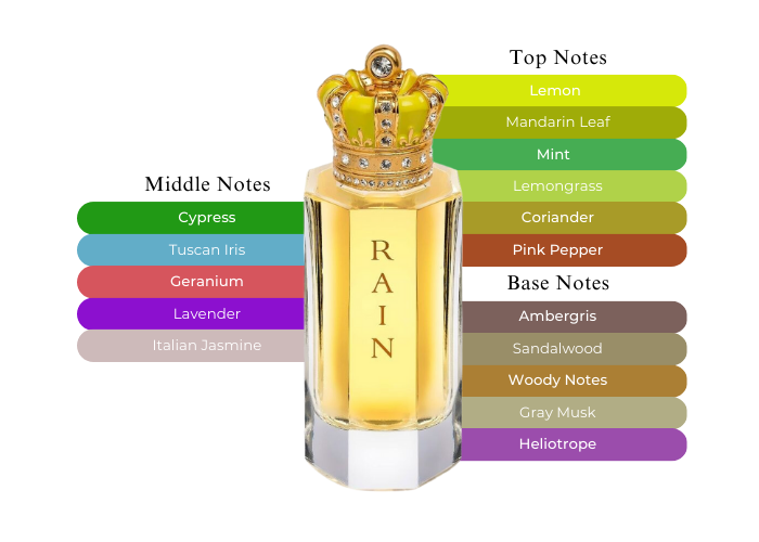 A fresh fragrance, green and spicy for an elegant man, an homage to the art of living that defies convention and moves beyond sense and reason. An unique and contrasting scent with a powerful enchanting trail; elegant in its unique composition offering a perfect blend of luminous green crisp notes of tangerine leaves. Calabrian bergamot and neroli that leads to a heart of jasmine, rose and Iris Fiorentina. A base of sandalwood and grey amber provides a woody undertone complemented by heliotrope, vetiver and musk. An ancient rain of sunrises and sunsets of a cloudless sky. Feeling the smell and the echoes in the hidden distance penetrate one's Being. Unique sensations are relived every time you wear it its fine and unique aroma seems almost to interact with your moods. Feeling the freshness of a summer morning and the smell of the harvest and a land parched by the sun you smell the fresh and crisp mountain coniferous. Rain belongs to an adventurer, looking for unknown lands, who loves large open spaces and likes to explore the hidden spirit of faraway places. Top Notes Calabrian bergamot, lemongrass, mint, lemon, pink pepper, coriander, mandarin leaves Heart Notes Geranium, cypress, lavender, absolute iris Fiorentina, absolute Jasmine Base Notes Sandal Mysore, sweets woods, grey amber, grey musk, heliotrope