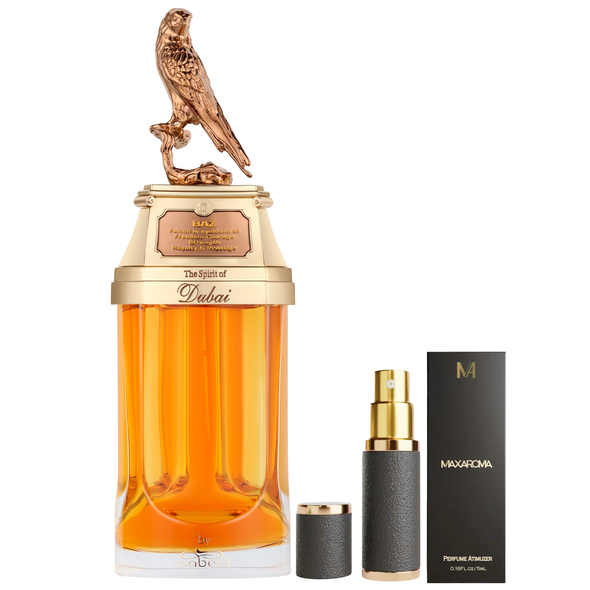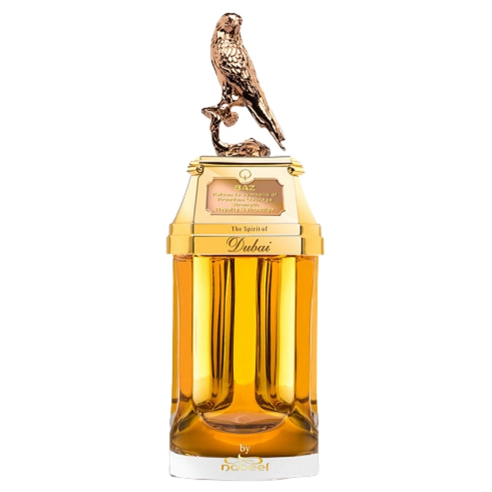 Perched high above the clouds, Baz looks down at us. Depicted for posterity in his bronze-hued glory, the falcon is the ruler of the skies. Taking a journey with Baz, you close your eyes and take a deep breath. You are filled with the smell of falcon leather and the woody scents of smoked olibanum, vetiver, labdanum and Indian agarwood oil.