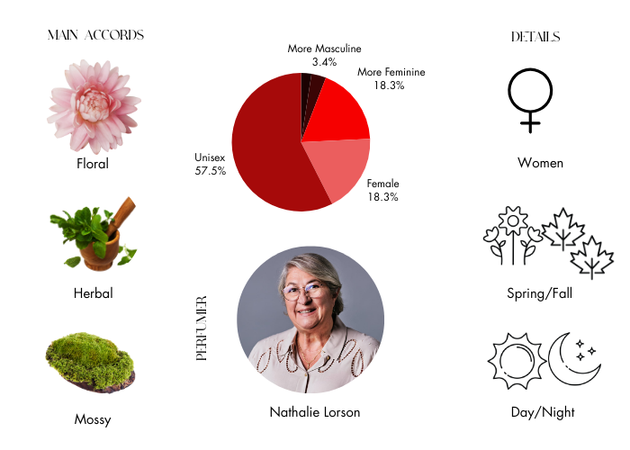 • Top Notes: Narcissus, Galbanum and Violet Leaf