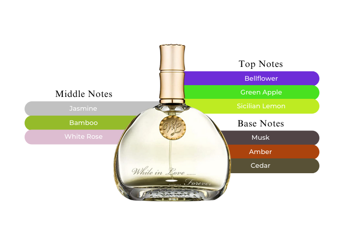 • Middle Notes: Jasmine, Bamboo and White Rose