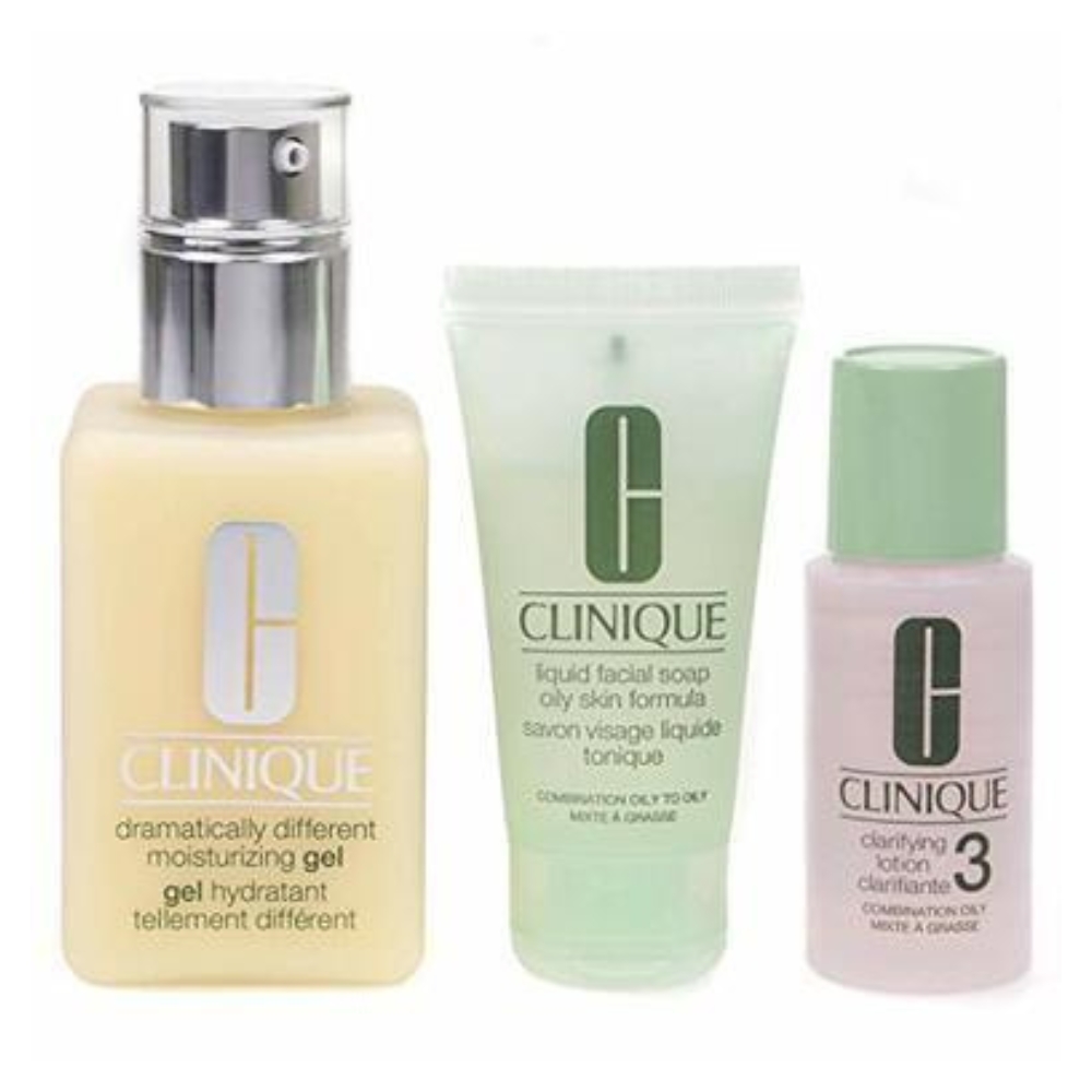 Clinique Great Skin 3 Step Skin Care System: Liquid Facial Soap Oily Skin, 1oz Clarifying Lotion - # 3, 4.2oz Dramatically Different Moisturizing Gel With Pump IN BOX