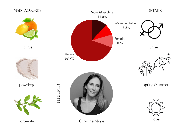 This perfume is a blend of coriander, yuzu and bergamot, violet leaf, lavender and violet, are cedar, patchouli, musk and white amber.